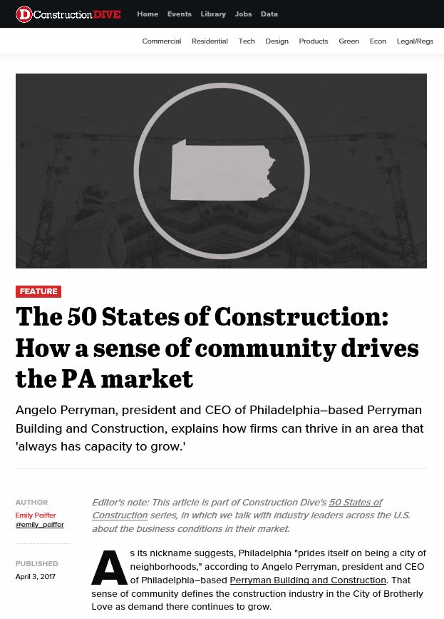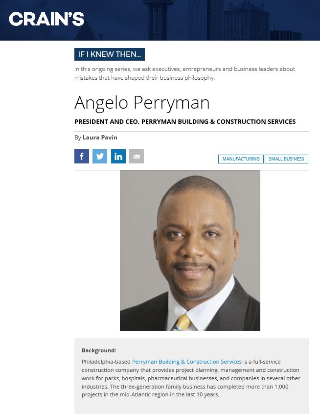 Angelo Perryman, president and CEO of Philadelphia– based Perryman Building and Construction, explains how firms can thrive in an area that 'always has capacity to grow.'